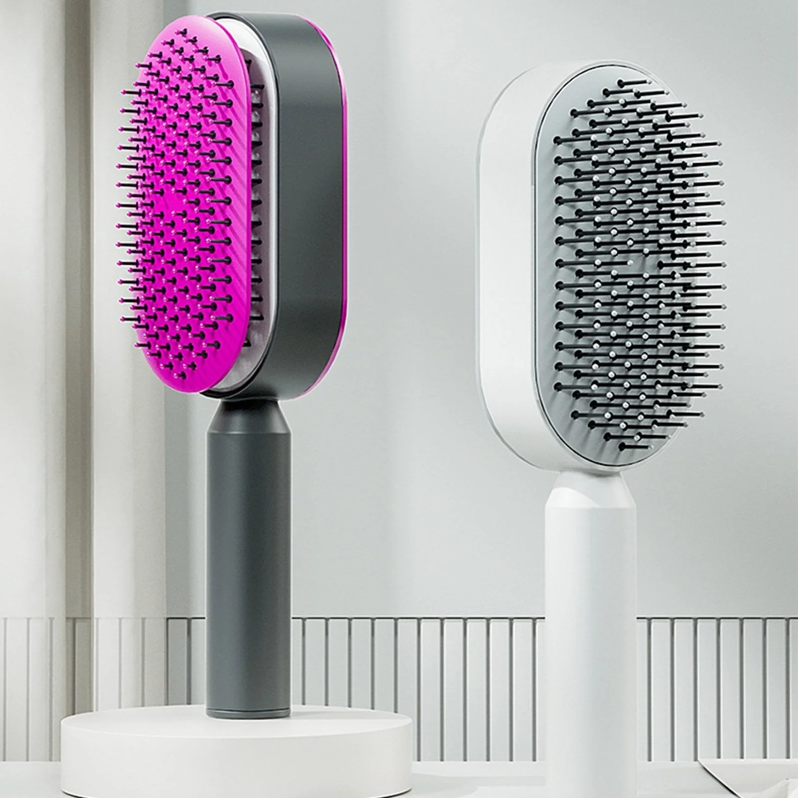 Introducing the Self Cleaning Hair Brush - the ultimate upgrade to your hair combing experience! Our innovative 3D Air Cushion Design allows for one-click self-cleansing, making hair combing quick, easy, and hassle-free.Â